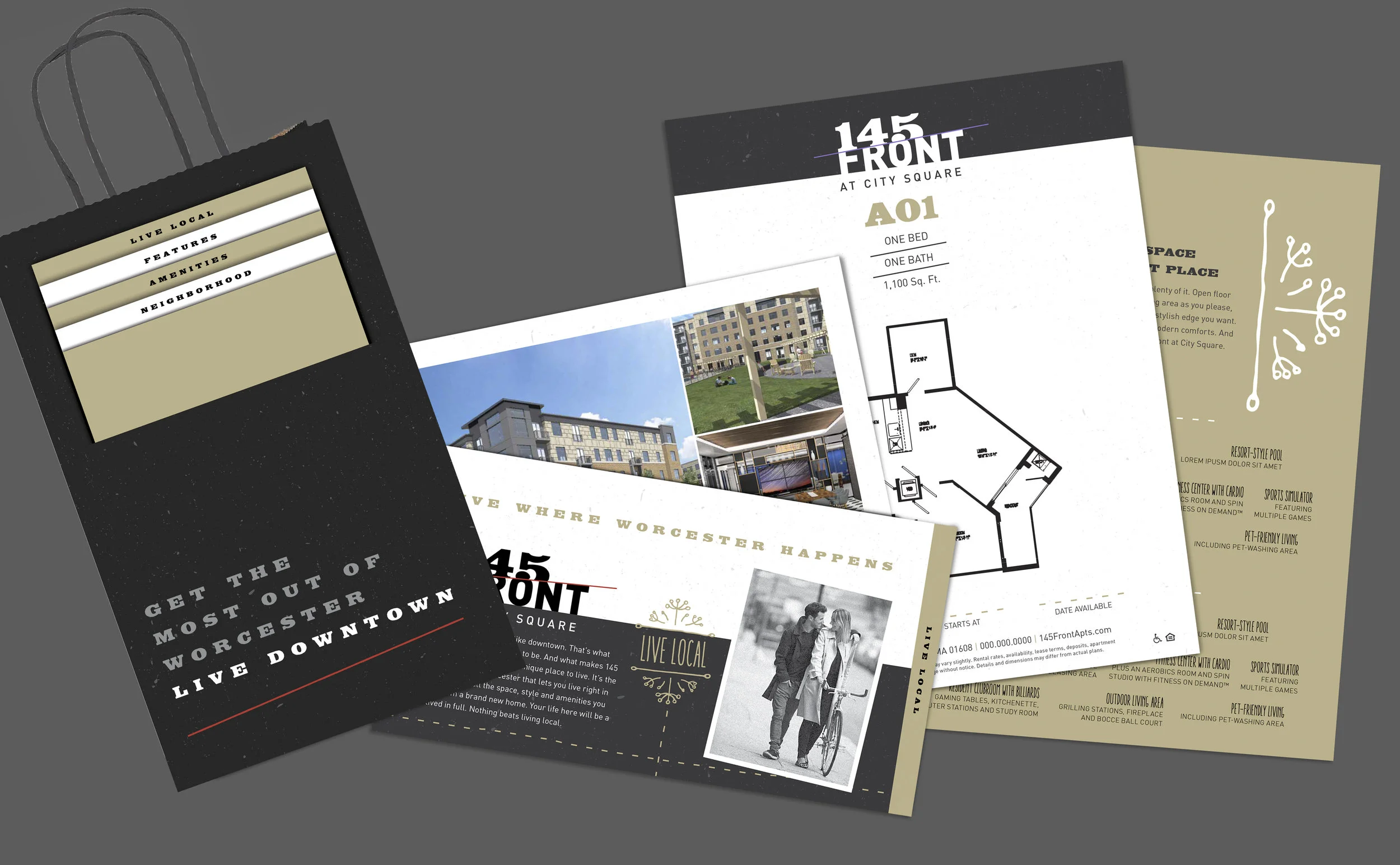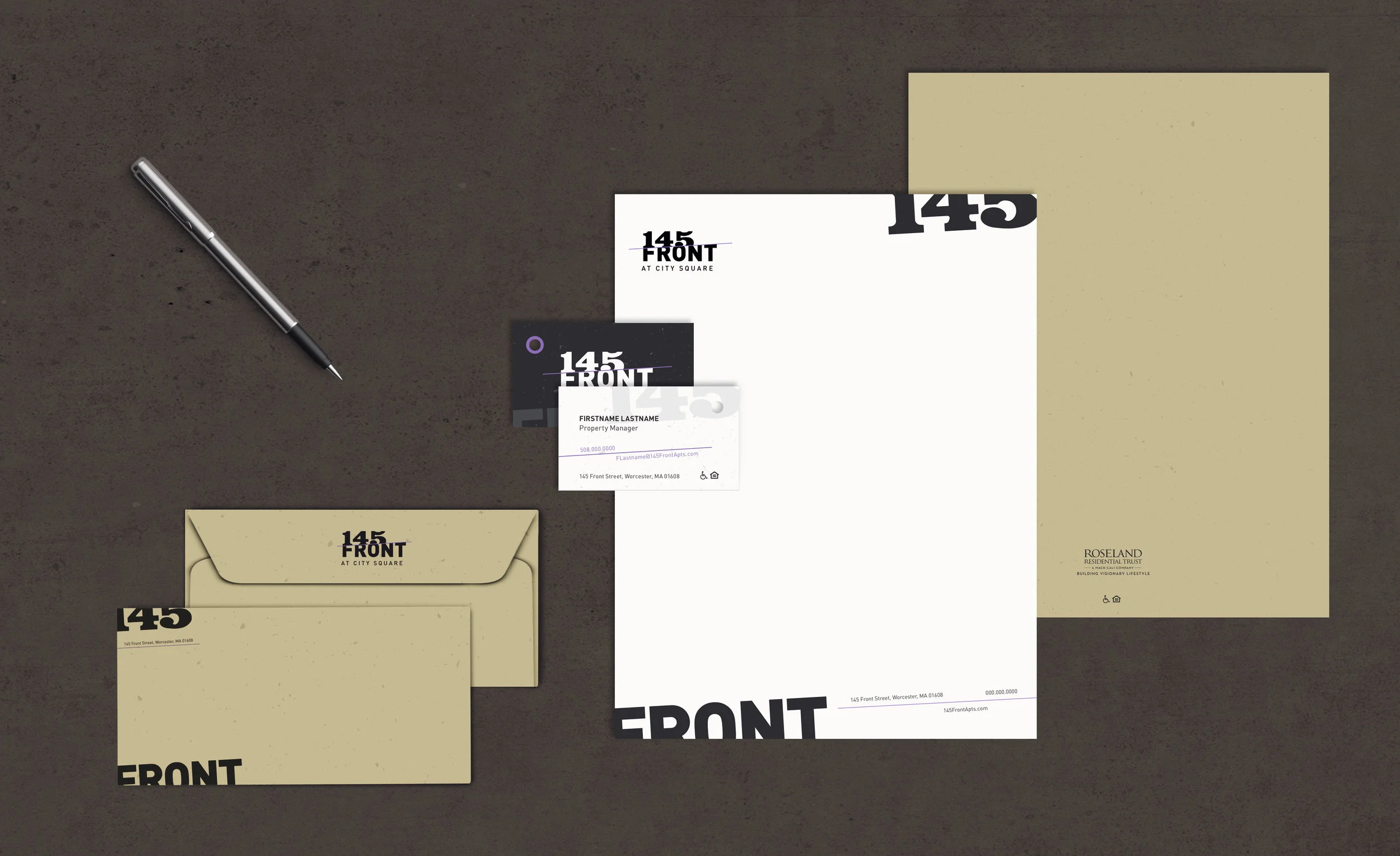 When we first visited Worcester, MA, the future home of 145 Front Apartments, the message was clear: don’t live downtown. As we shopped the competition, the leasing agents consistently reiterated the safety/security concerns of living in downtown (even though this is a fair housing violation). 145 Front was being built as one of many initiatives to help change this perception and revitalize the city. Our challenge was to create a brand that allowed people to feel good about living downtown.